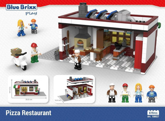 Bluebrixx Pizza Restaurant and Delivery Scooter Set 108027