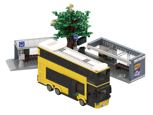 myBrickZ Yellow double-decker bus with bus stop #0002