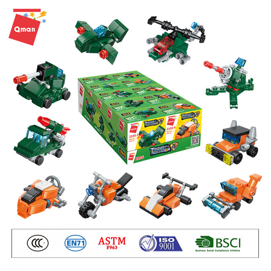 Qman building blocks are a type of construction toy similar to LEGO, COBI, Xingbao and others, designed to provide educational and creative play. They consist of interlocking plastic bricks and an array of gears, mini-figures, and various other parts that can be assembled and connected in many ways to construct objects, vehicles, buildings, and other structures. Qman is known for its quality, variety of sets, and compatibility with other brick brands, offering children and hobbyists an expansive realm for creativity and learning through play. The company focuses on themes and designs that stimulate imaginative play and skill development, from simple structures for younger children to more complex kits that challenge older kids and adults. As with many building block brands, Qman encourages the development of fine motor skills, spatial awareness, and problem-solving abilities.