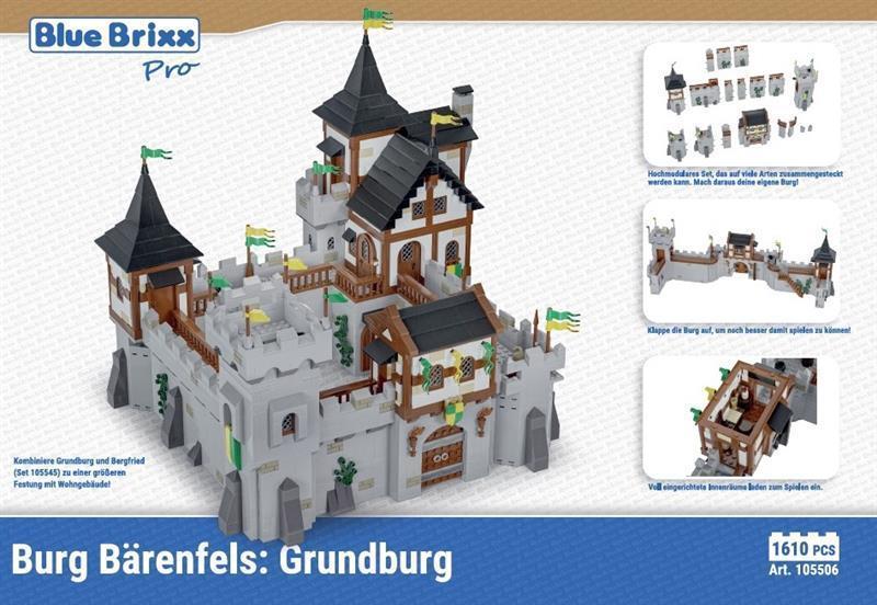 The BlueBrixx Bear Rock Castle: Base Castle (Set 105506) is a modular medieval-themed building set, designed by Marco P. This set is part of the BlueBrixx-Pro series and offers a highly detailed and expandable castle base.
