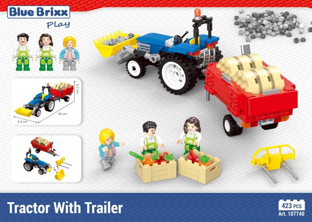 Bluebrixx Farm - Tractor with Trailer Set 107740