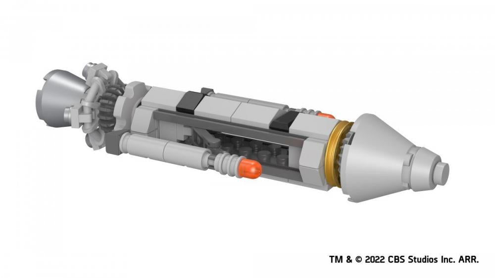 This BlueBrixx Pro set faithfully recreates the Phoenix in a compact 121-piece building block format. With dimensions of 170 x 77 x 79 mm when completed, this model impressively captures the unique design of the modified Titan V nuclear missile that Dr. Cochrane and his team transformed into a vessel capable of breaking the light speed barrier.