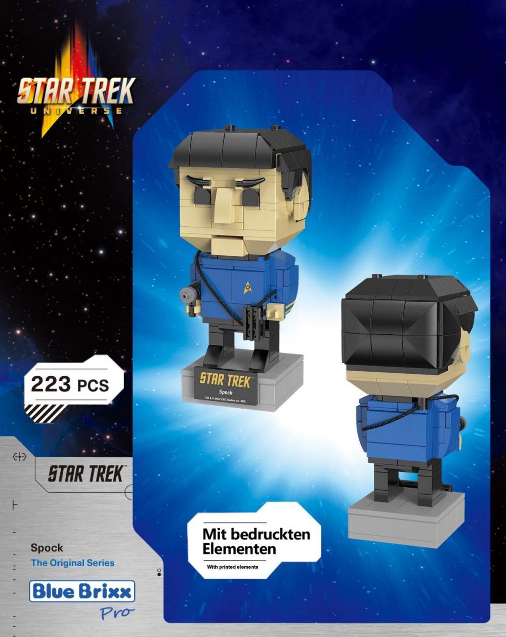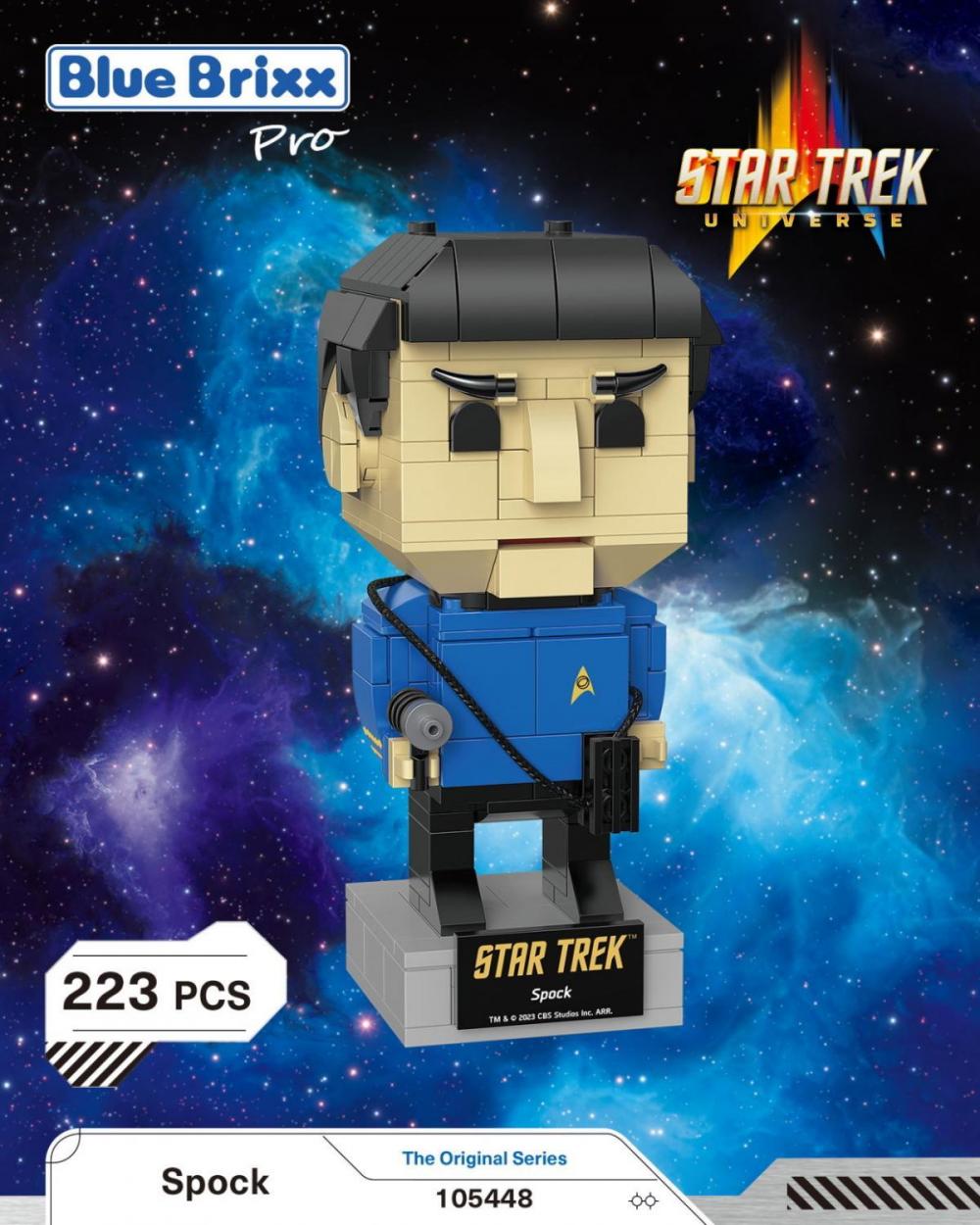 The BlueBrixx Star Trek Spock (Set 105448) is a collectible building set from Star Trek: The Original Series, part of the BlueBrixx-Pro Brick Buddies series. With 223 pieces, this set allows you to recreate the iconic Vulcan, Spock, with attention to detail in his uniform, featuring the Starfleet logo and his distinctive hairstyle and ears.
