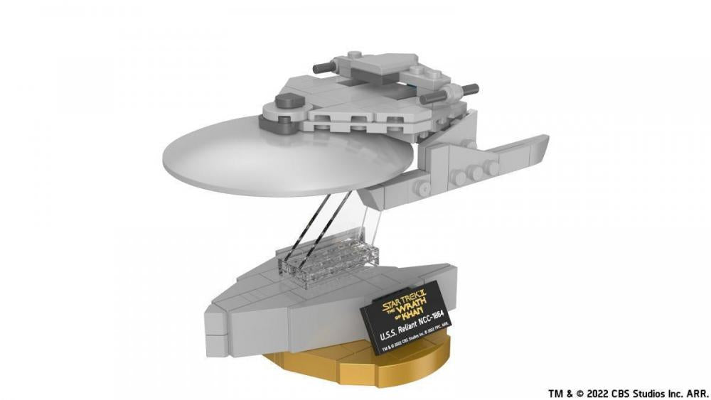 This 137-piece building set recreates the unmistakable profile of the USS Reliant with its characteristic "rollbar" sensor platform and underslung warp nacelles. With dimensions of 145 x 95 x 95 mm when completed, this compact model makes an impressive addition to any Star Trek collection while requiring minimal display space.