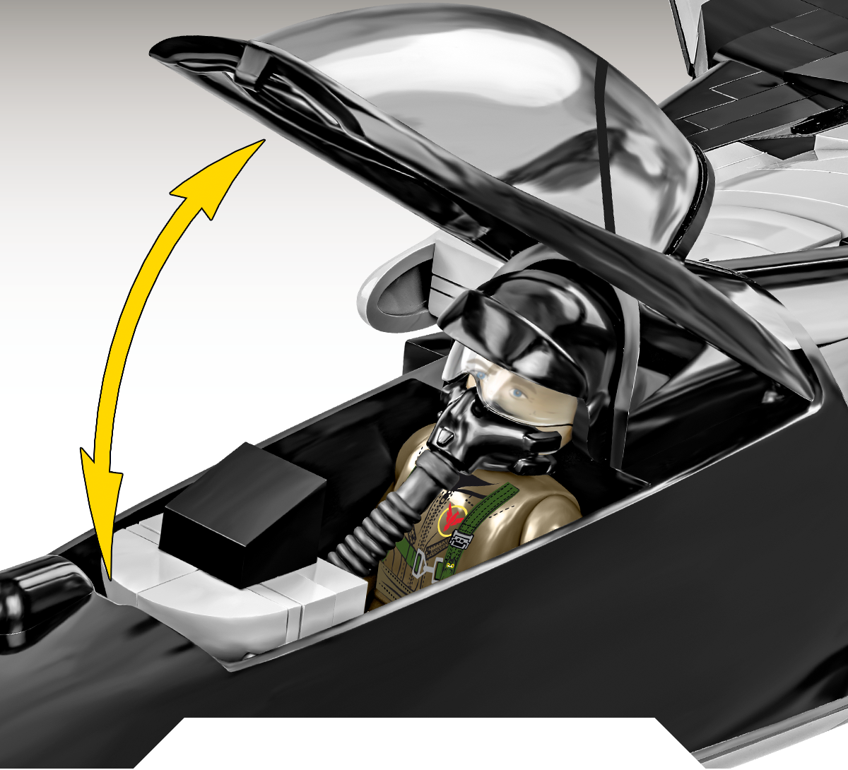 Blue Flames from the Engine - The set includes blue bricks that imitate the blue flames emanating from the fighter's engine. This important detail allows for a wonderful display of the aircraft and is also very attractive during play.
