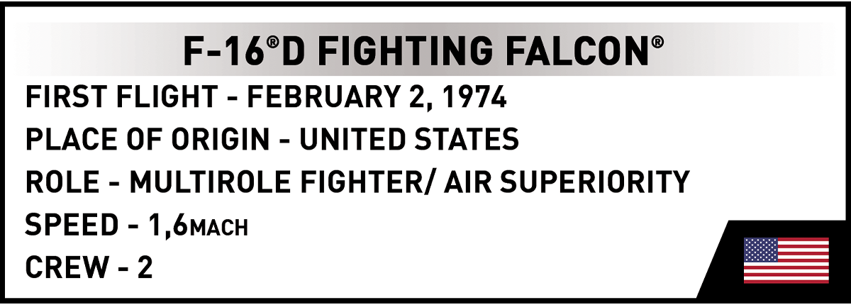Whether you're a fan of aviation, history or simply a building block enthusiast, the F-16D FIGHTING FALCON will be a great addition to your collection.