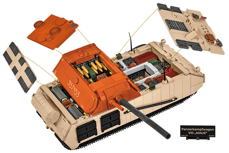 The Panzer VIII Maus model from COBI is not only a powerful construction made of blocks but it is also a great tool for learning history, creative play and developing a passion for modeling. This is a unique limited edition with unique model colors, up to four figures and original, collector's accessories.