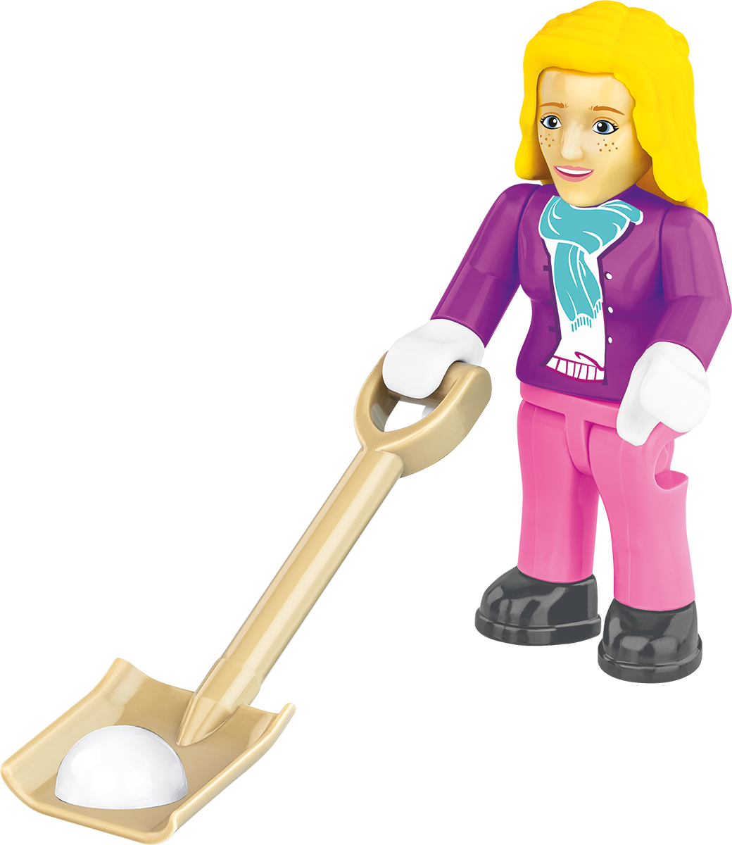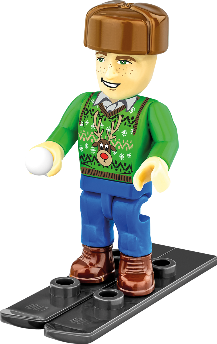 Two figures – A couple ready for incredible winter adventures: a skier in retro attire preparing for the descent and a ski mechanic who rents skis and ensures safety on the slopes. Build them and get them ready for the slopes, then place them next to the car to enjoy the beautiful mountain scenery.