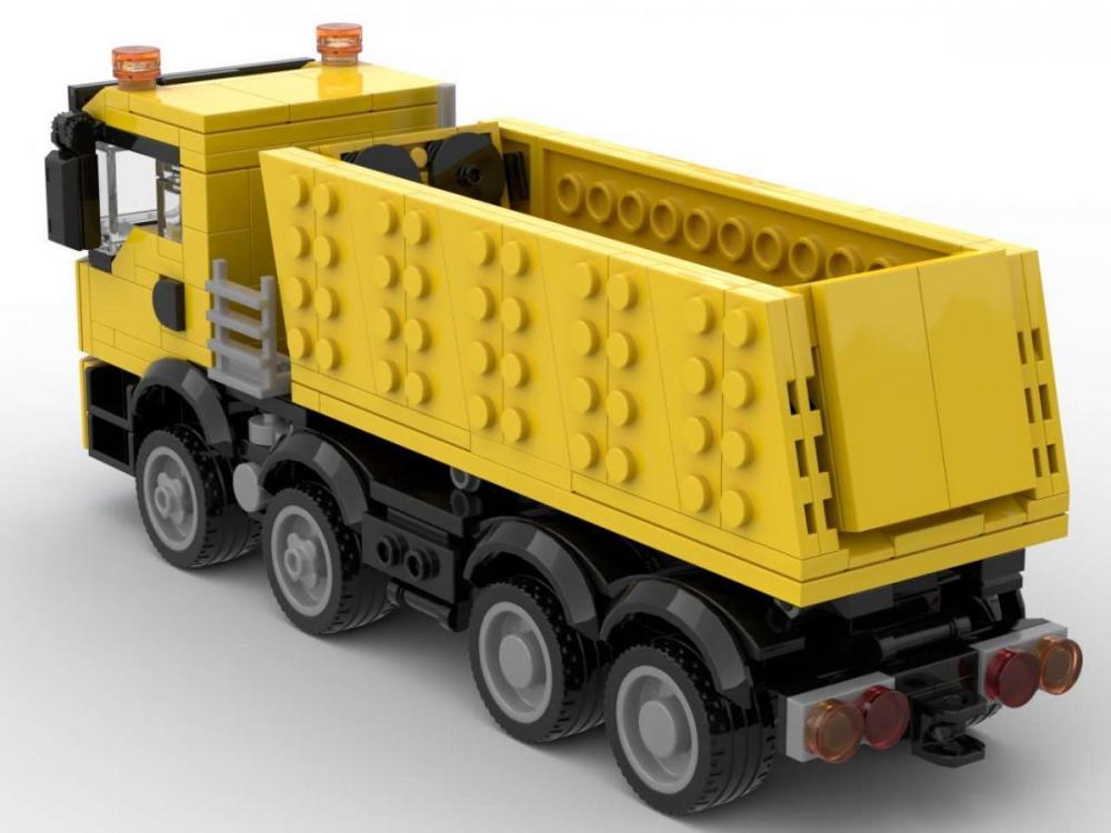 - Design: The dump truck is designed with a realistic yellow color scheme, typical of construction vehicles, and features a detailed cab and functional dump bed.