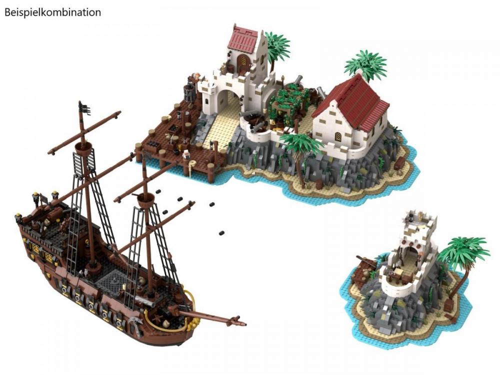 This set is perfect for fans of pirate-themed models and modular builds, offering both a detailed display piece and an interactive element to your existing collection.