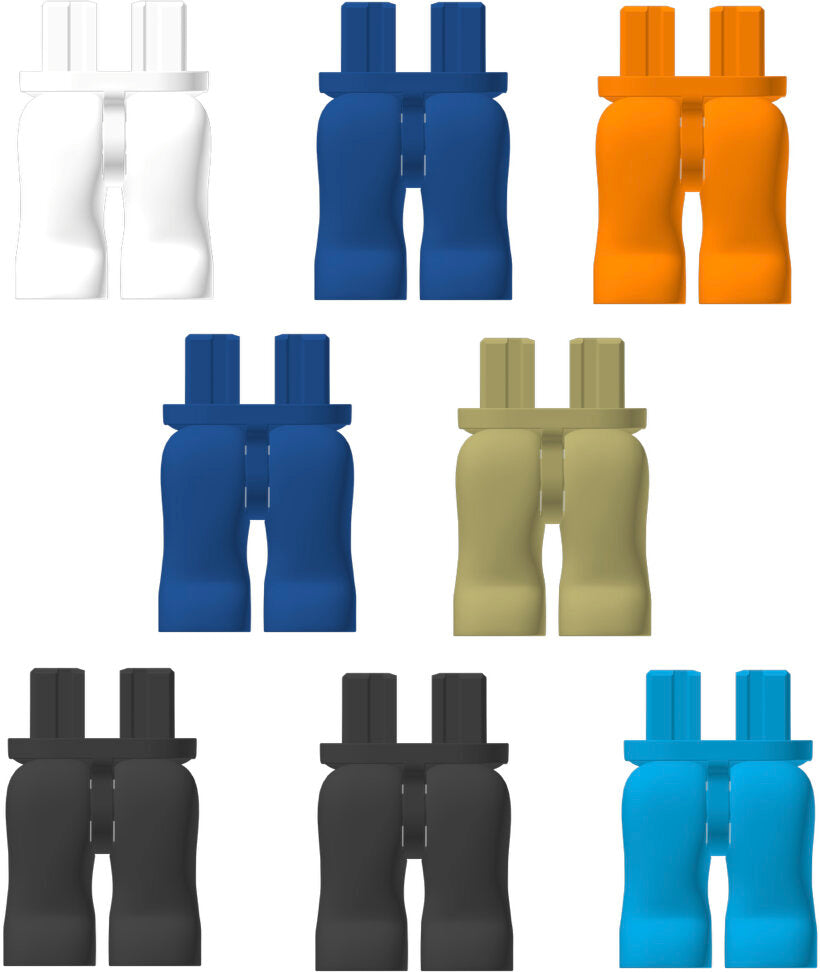- Eight Pairs of Legs: Unprinted legs in colors such as black, white, orange, blue, dark blue, and khaki green, providing a range of styling options.