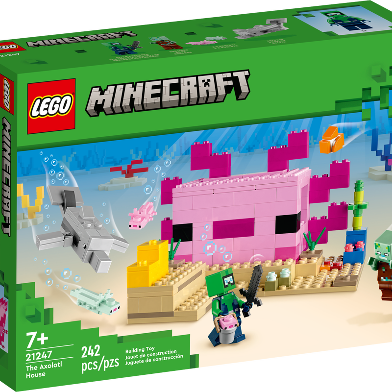 Treat Minecraft® players to hands-on underwater adventures featuring one of the game’s cutest creatures – the axolotl. LEGO® Minecraft The Axolotl House (21247) brings Minecraft’s creative construction and imaginative action into the real world for players aged 7 and up.