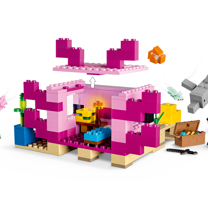 - Iconic Minecraft® set – LEGO® Minecraft The Axolotl House (21247) is a buildable underwater base with classic Minecraft features and action inside and out