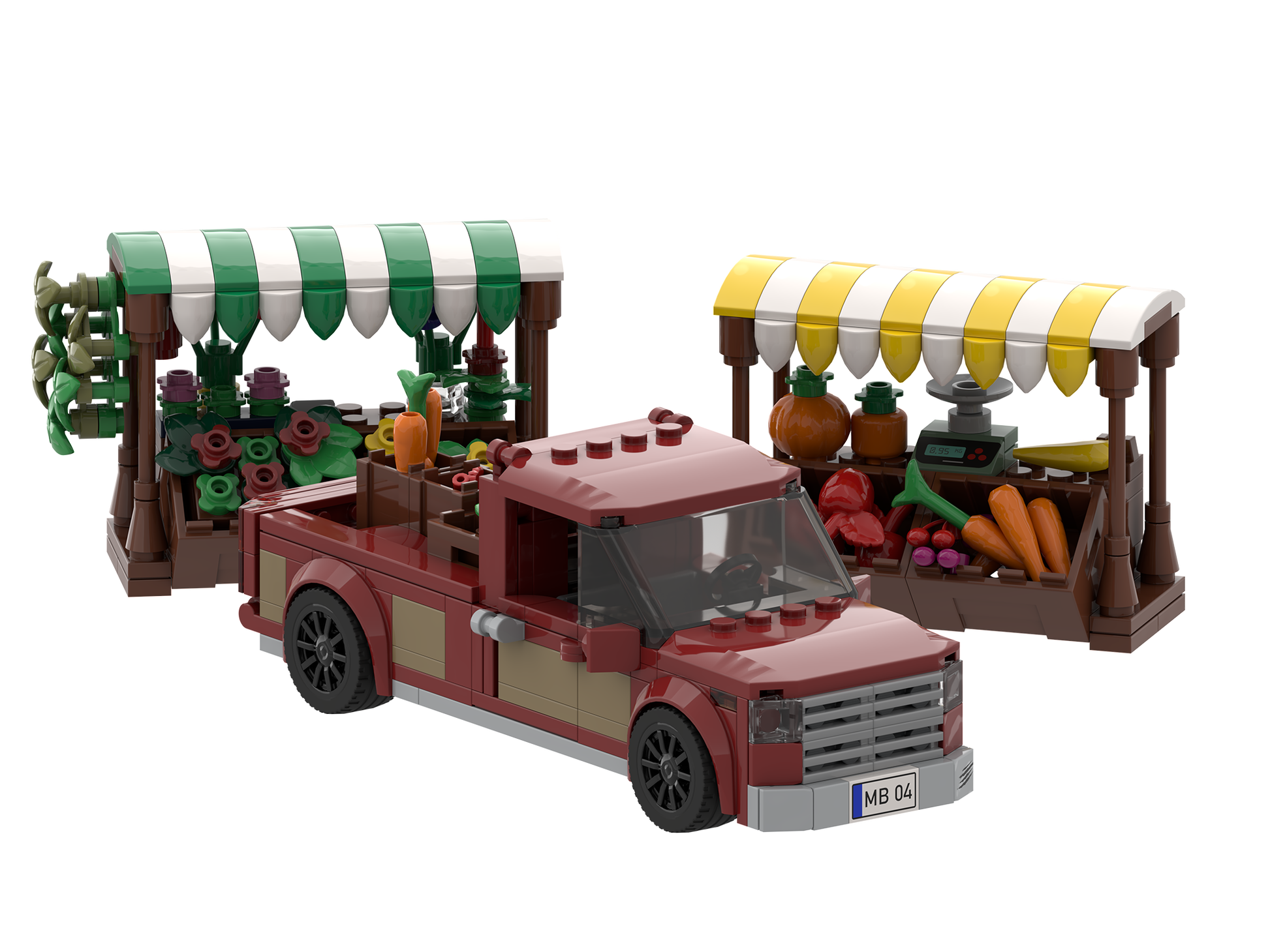 myBrickZ Red pickup with market stand #0004