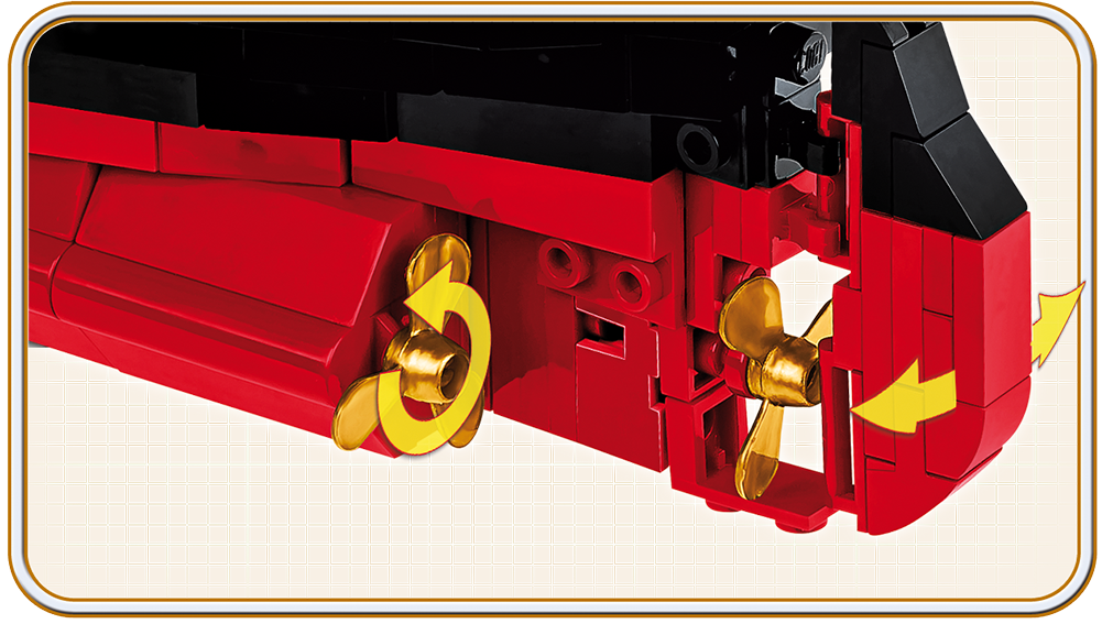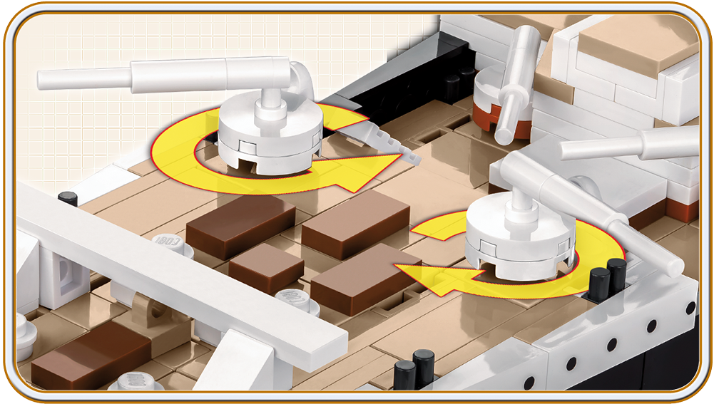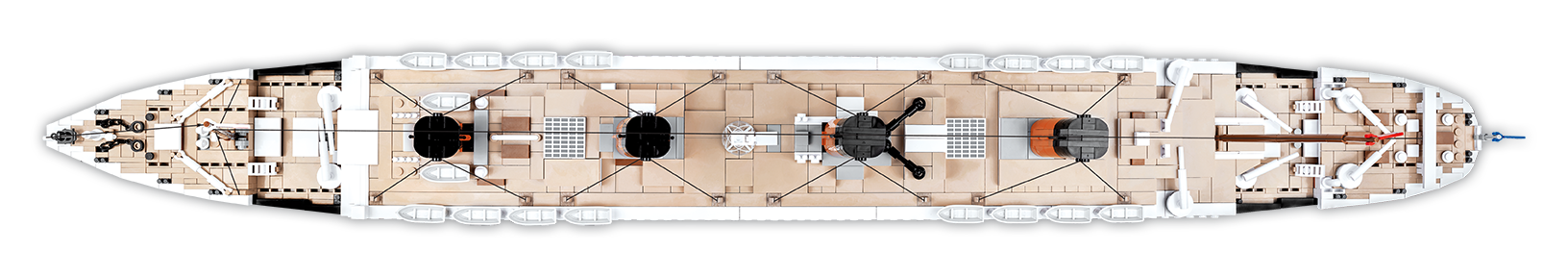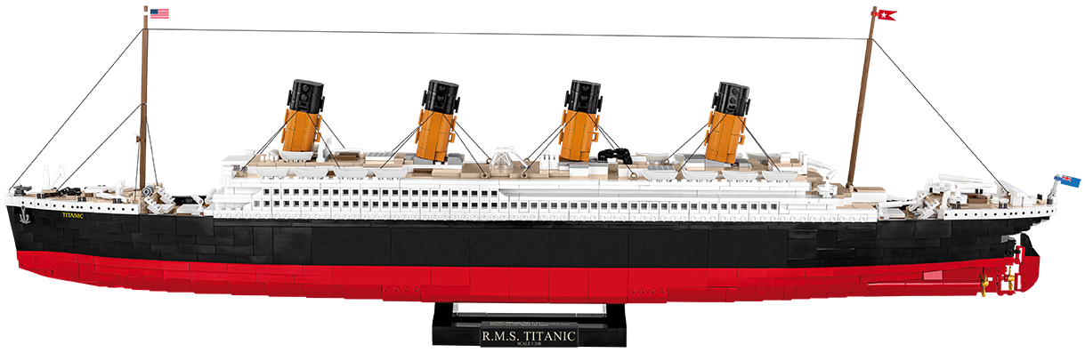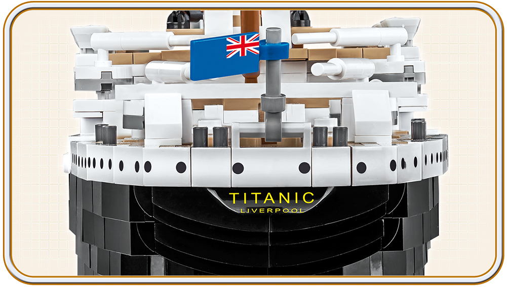 The ship model consists of 2,840 blocks and is the largest construction block set in the history of COBI. Once completed, it is 92 cm long (36.25”), 10 cm wide (4”) and 28 cm high (11”). It is faithfully reproduced in 1: 300 scale using the smallest details and carefully follows the shape and design of its legendary original. It weighs a total of about 4.5 kg (10 pounds). This set will be the ultimate challenge for all block builders. It does not require gluing or painting, and all graphics and inscriptions are applied to the blocks in the form of very durable prints that do not wear off or fade under the influence of the sun, water or even very intense fun. No stickers were used in the model. The set is intended for people over 10 years of age. It will certainly give a lot of satisfaction to both the youngest fans of blocks and adult enthusiasts of history and maritime art. The set also includes a special black base with a plate with the name of the ship.