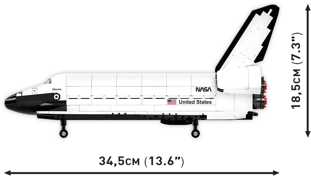 The space shuttle Atlantis is one of mankind's greatest creations and has made a lasting mark on the history of space exploration. The block model perfectly complements the COBI Historical Collection. The carefully designed set includes a model of the Atlantis prepared in a scale of 1:100. The Atlantis features a very accurate reproduction, high-quality prints, movable elements, access to the interior, a figure of an astronaut and a mini-model of the Hubble telescope, combining collector's and educational value. You can display the whole thing using the stand included in the set.