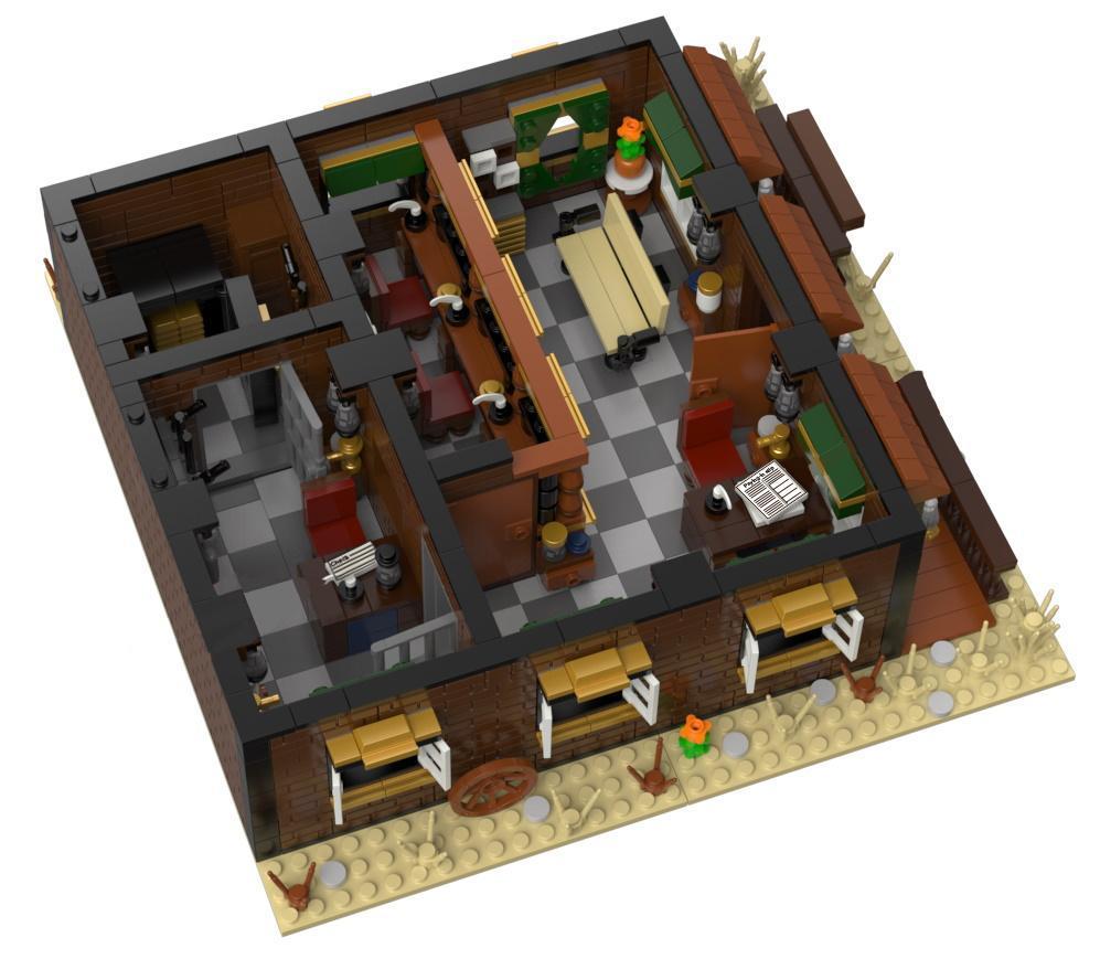 - Design: Crafted by XingBao, the set captures the essence of a traditional western bank.